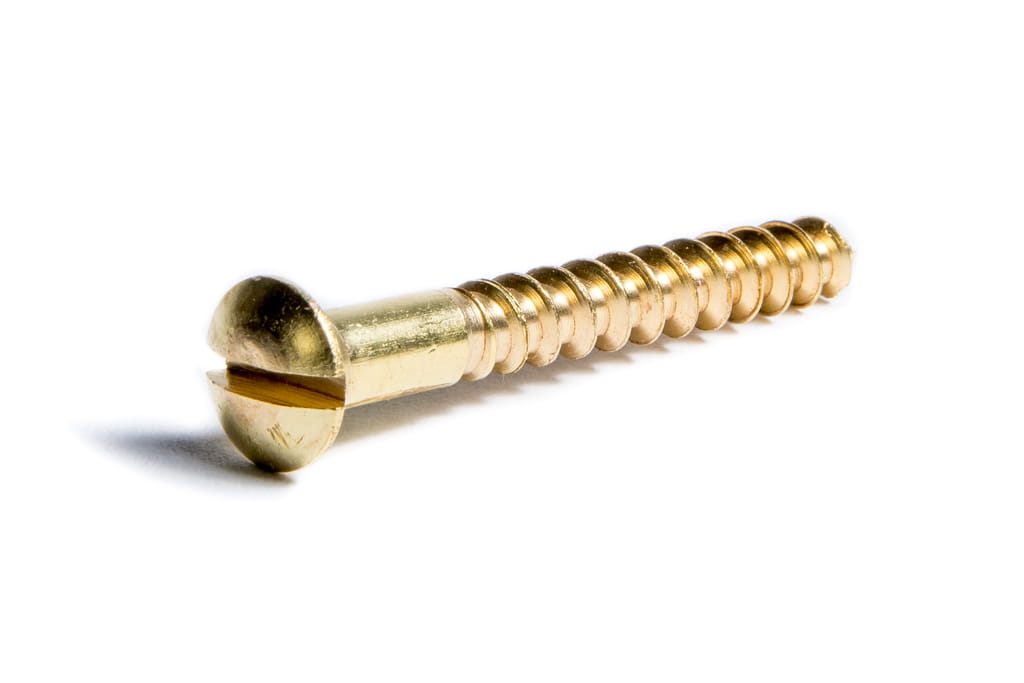 - Materiał: Wkręt jest wykonany z mosiądzu, stopu miedzi i cynku, co zapewnia mu atrakcyjny wygląd oraz dobrą odporność na korozję.