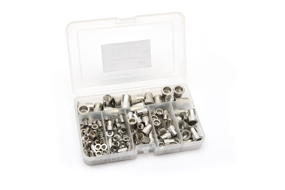 W zestawie 6 popularnych rozmiarów nitonakrętek nierdzewnych